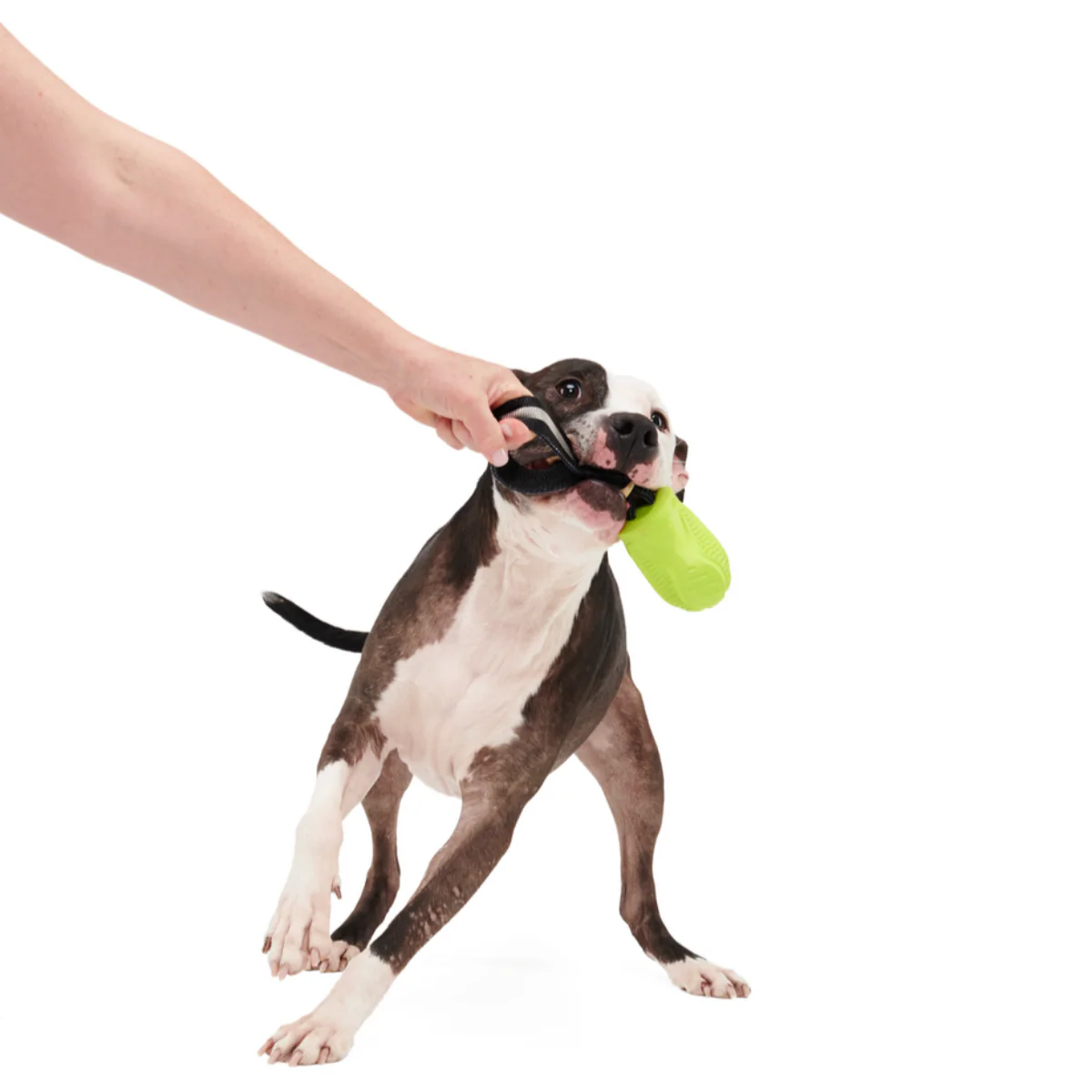 Make sure your dog is sporting wagulation gear for their next tug competition. This toy is made of mint-scented natural rubber, perfect for a fresh round of fetch. And the reinforced nylon strap lets your dog toss, tug, and thrash it all on the field.